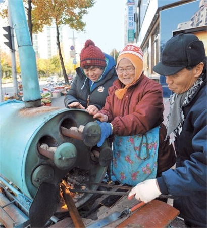 每到天氣開始變冷時,路上就會出現賣烤地瓜的攤子